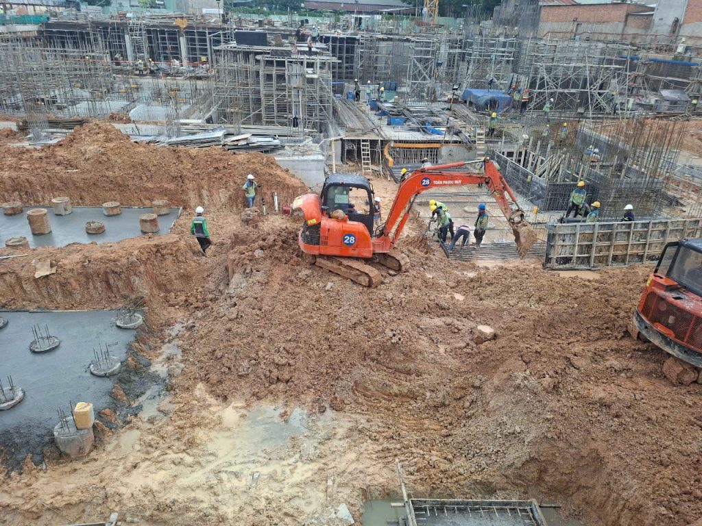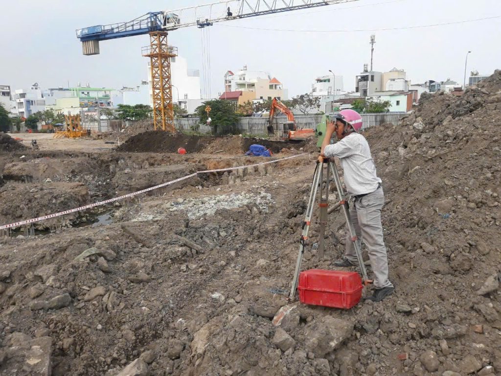 Đây là công tác đo đạc phục vụ định vị, thi công, tính toán khối lượng đào đắp cho các công trình khai thác mỏ, dầu khí, đo đạc lưới tọa độ và độ cao chuyên dùng. Ngoài ra còn đo đạc phục vụ thi công phần móng công trình như định vị cọc khoan nhồi, cọc đóng, tường vây, tầng hầm, định vị tim mốc công trình.
